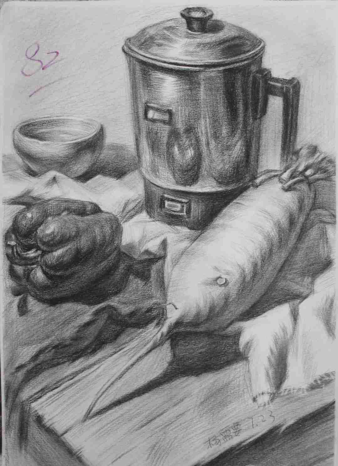 王雨奇同學(xué):進(jìn)班時(shí)有個(gè)小測(cè)試測(cè)我們的基礎(chǔ),我看到靜物放那就有點(diǎn)懵,但測(cè)試還是得做,我就拿筆畫(huà),最后自然是畫(huà)得不太好,不過(guò)后來(lái)在老師的指導(dǎo)下,自己也在每天勤加練習(xí),每天都能看到自己一點(diǎn)一滴的進(jìn)步,雖然到現(xiàn)在可能在班上不算是畫(huà)得特別好的,但我覺(jué)得自己每天都在進(jìn)步,已經(jīng)很棒了,未來(lái)我也會(huì)繼續(xù)努力,希望能有更大的進(jìn)步。