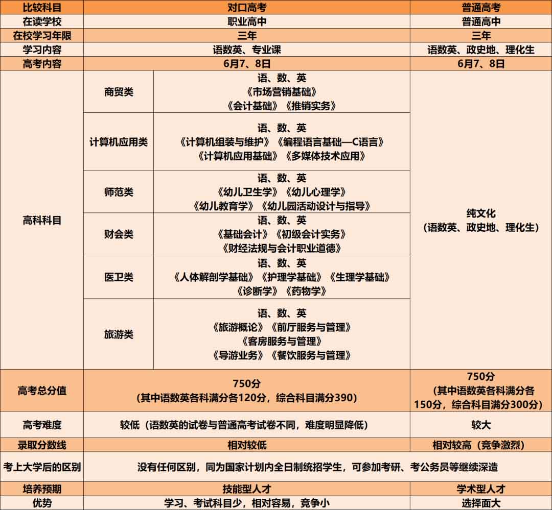 普通高考是千軍萬馬過獨木橋,每年高考季將有一大批人才會被刷下來,而對口高考就只是在職校之間競爭,對比普通高考人數(shù)也更少,考試難度也更低,對于文化課不是很好的職校生來說,對口高考就是希望。