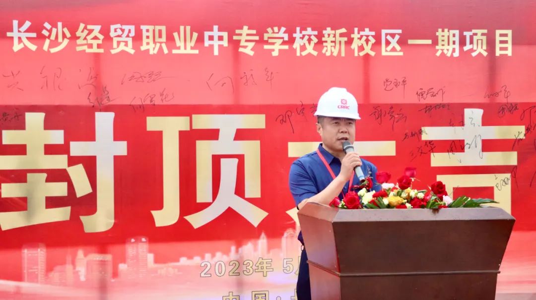 項目承建方湖南中車環(huán)境工程有限公司董事長黨永平表示,封頂儀式是一個節(jié)點也是一個新的起點,本項目的順利封頂,標志著工程建設(shè)取得了階段性的勝利,也為下一步工作開了個好局,湖南中車環(huán)境工程有限公司將繼續(xù)秉持“求精嚴謹、堅守堅持、追求品質(zhì)”的工匠精神,全面統(tǒng)籌推進項目履約、質(zhì)量、安全、環(huán)保等各項工作,保質(zhì)、保量的完成該項工程的施工任務(wù)。把長沙經(jīng)貿(mào)職業(yè)中專學(xué)校新校區(qū)建設(shè)工程,建設(shè)成為樣板工程、精品工程,世紀工程!