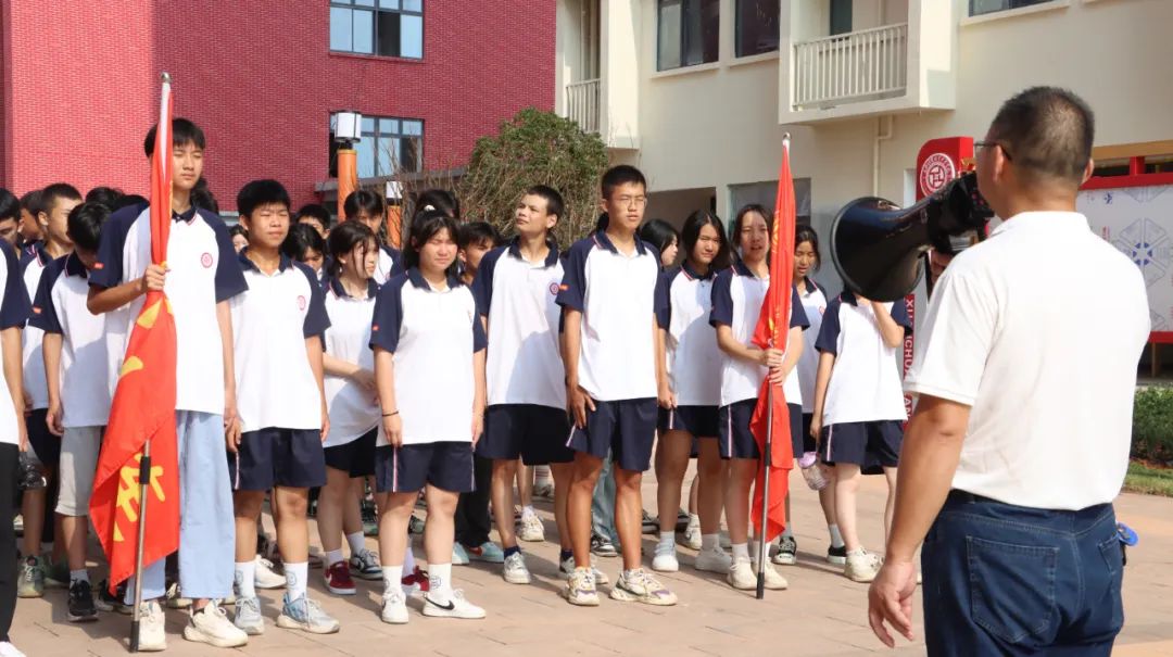 同學(xué)們唱著嘹亮的軍歌,身著齊整的校服,邁著堅定的步伐按連隊順序出發(fā)。