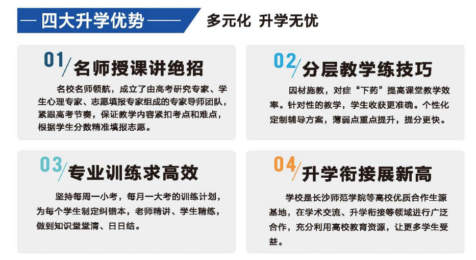 學(xué)校引進(jìn)一大批高考備考名師,全面提升教學(xué)質(zhì)量,領(lǐng)跑全省中職高考,同時(shí)也為普高學(xué)子搭建換道超車(chē)成才之橋。熱忱歡迎全國(guó)各地學(xué)子前來(lái)我校深造,圓大學(xué)夢(mèng)成才夢(mèng)。