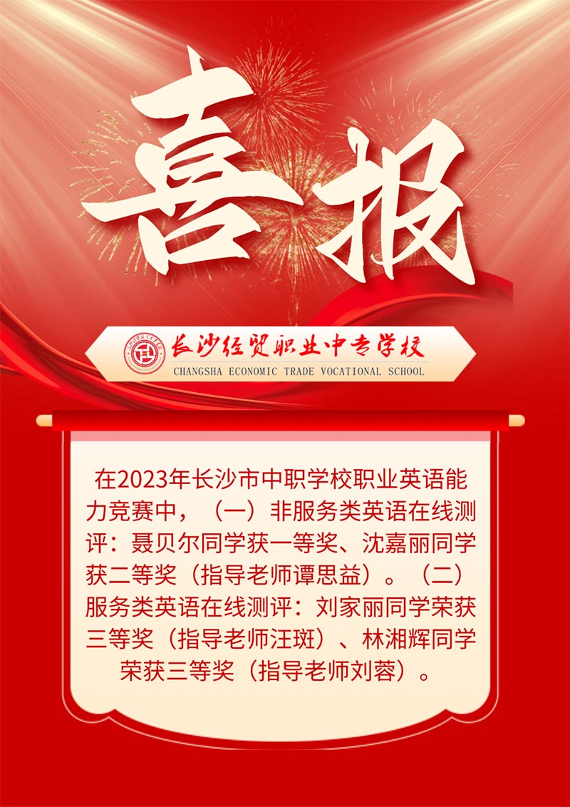 11月1日,長沙經貿學校在2023年長沙市中職學校英語能力競賽中取得優(yōu)異成績,斬獲多獎,12名參賽選手均載譽而歸!