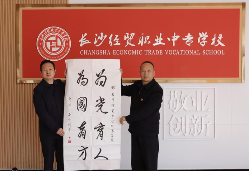 儀式當(dāng)天,文勇一行參觀了學(xué)校田徑場等教學(xué)樓場,并代國防科大原教育長、少將劉喬一向長沙經(jīng)貿(mào)職業(yè)中專學(xué)校贈送了”為黨育人,為國育才“書法作品。