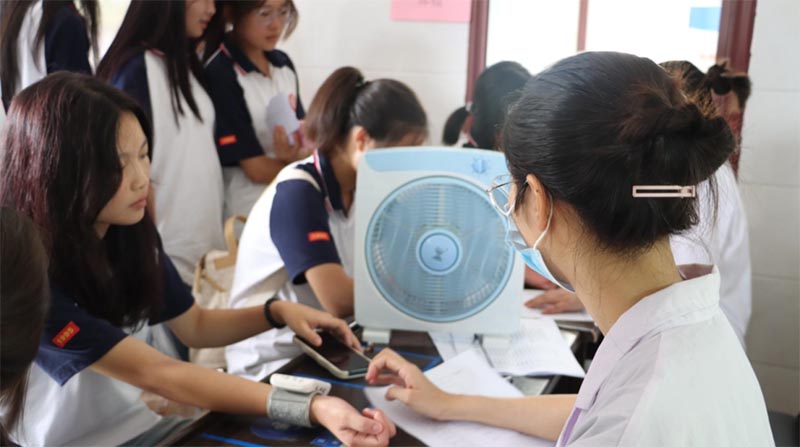 為了促進(jìn)學(xué)生健康成長(zhǎng),及時(shí)準(zhǔn)確掌握學(xué)生健康狀況,提高學(xué)生整體身體素質(zhì)水平,8月22日,長(zhǎng)沙經(jīng)貿(mào)職業(yè)中專(zhuān)學(xué)校聯(lián)合干杉衛(wèi)生院體檢隊(duì)對(duì)全體新生進(jìn)行了健康體檢。