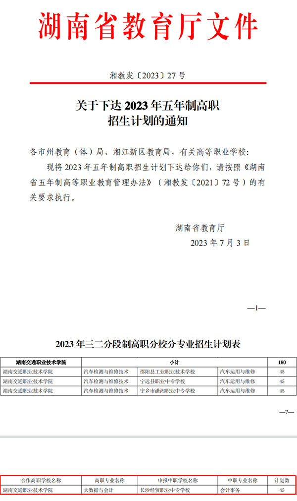 經湖南省教育廳批準,我校與湖南交通職業(yè)技術學院聯(lián)合打造了“大數(shù)據(jù)與會計五年制大專班”。五年制大專班采用“3+2”模式,通過校、校雙方共同管理,實現(xiàn)培養(yǎng)目標、專業(yè)設置對接,為學生搭建“中職-高職”成長通道。中職在長沙經貿職業(yè)中專學校完成,高職在湖南交通職業(yè)技術學院完成。
