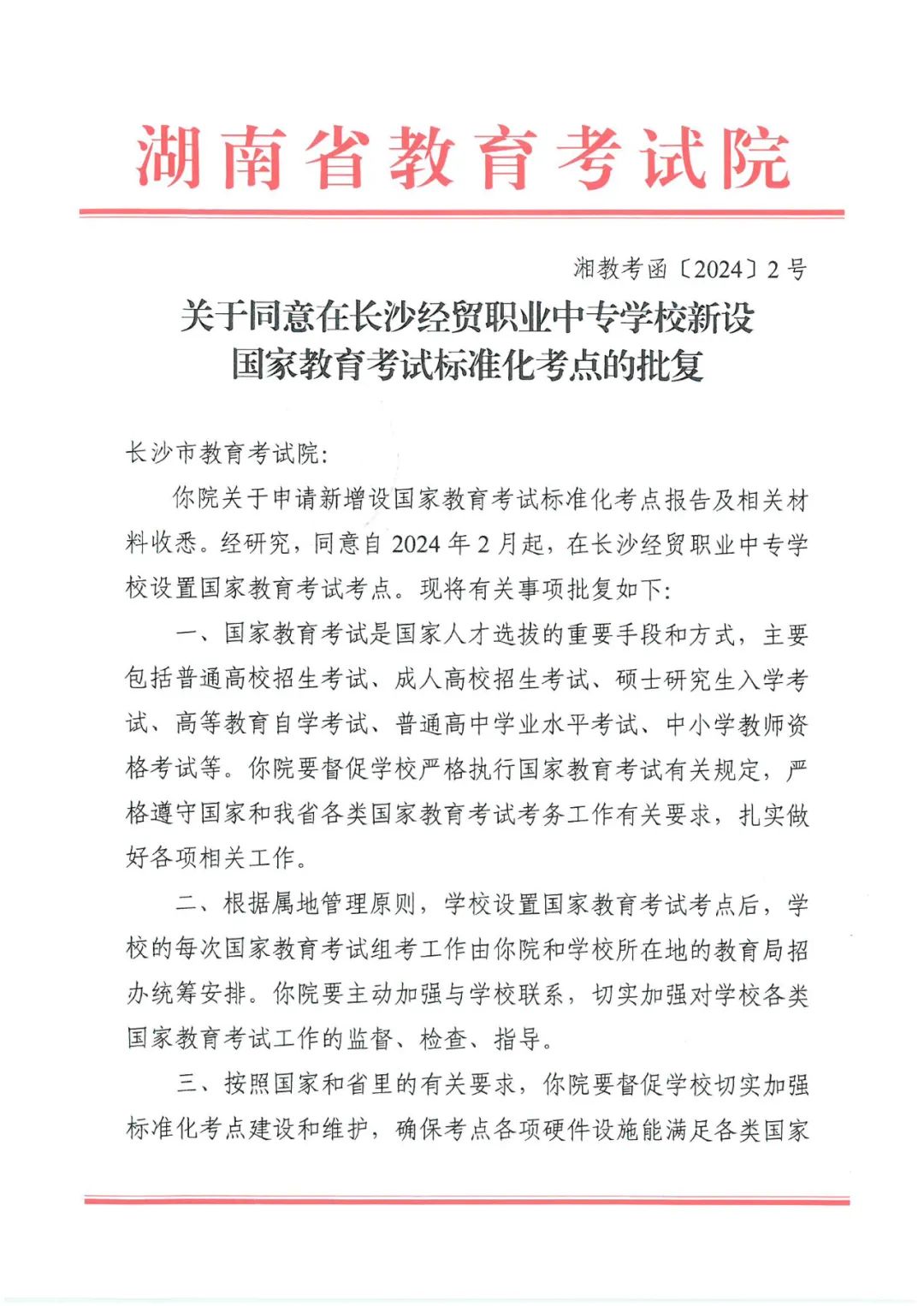 2024開門紅!我校成功申報為國家教育考試考點